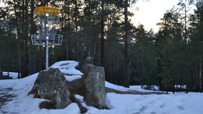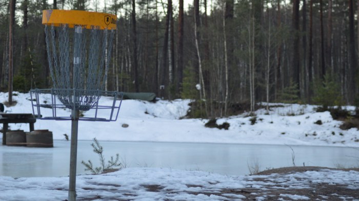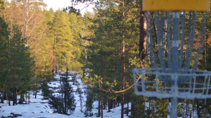 Talvella korin juurella saattaa olla lunta, joka jarruttaa ylimääräiset vauhdit pois ja päästään birdie paikoille suht mukavasti. Jos lunta ei ole lainkaan ja esillä on kallio, tai lumen pinta on kovin jäinen, voi monta odottaa ikävä yllätys, kun se täydellinen heitto korin juurelle onkin hyvällä tuurilla enää kakkosringissä.